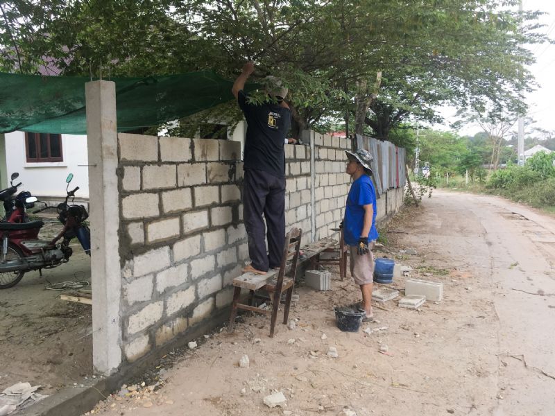 We assisted in building a wall. We dug holes, picked up trash, mixed and carried concrete, carried and layer bricks, and whatever else was asked of us. Physical labor shows the spoils of effort given. Also, some of the best food I have ever eaten.