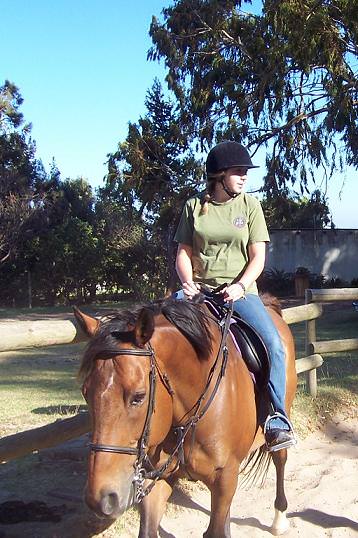 brown horse out of the barn and into the coral. I saddled up the horse and then