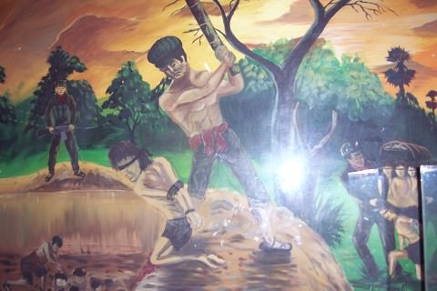 Our friend and translator here in Cambodia, KimSan, knows all too well the effects his country’s past can have on its Khmer (Cambodian) people. He told me of how his grandmother and grandfather were both taken to the Killing Fields (Cheung Eik) – the mass gravesite where 9,000 men, women and children were executed – when Pol Pot was in control. While his grandfather was murdered there, his grandmother was buried alive but fortunately when the soldiers left the fields that night she was able to crawl out and escape the genocide camp.