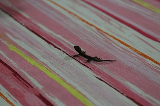 The other day I walked into our little Malaysian “kitchen” to throw something away. We had a mandarin orange box partially collapsed beside the garbage can, and I saw a lizard sitting on it. No matter how close I got, he didn’t move…odd. They usually scurry away as soon as you get even remotely close to them.