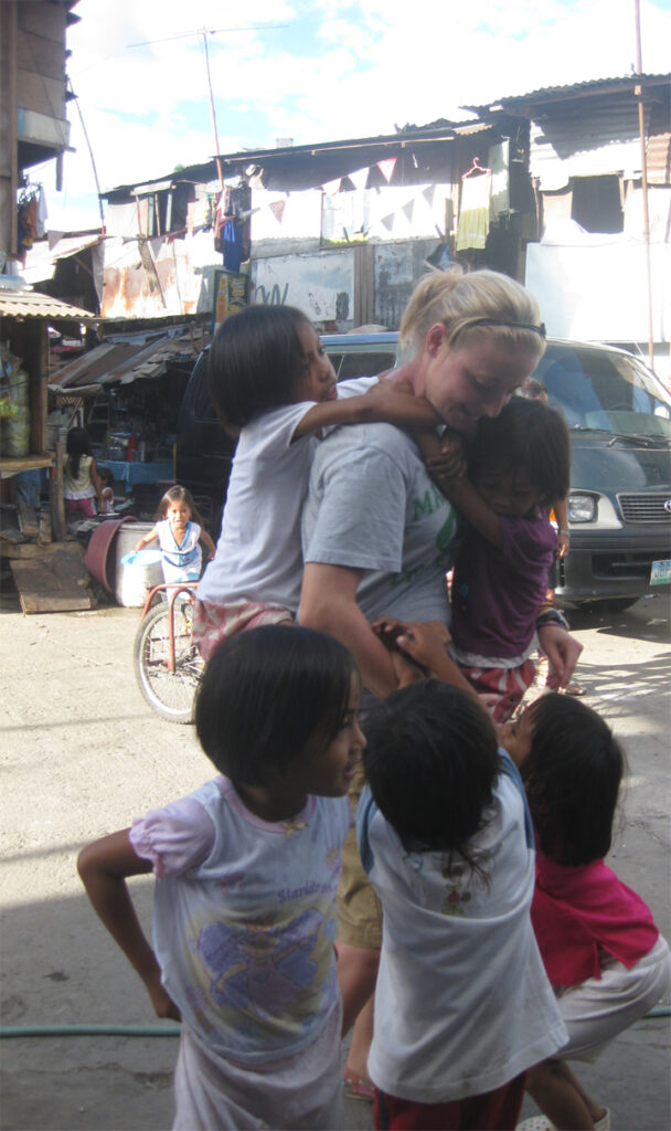 I will never forget the very first time that I went. It was before debrief was even over and we had not been given any of our ministry opportunities yet. They needed a few extra hands so, I piled in the car with a few others and off we went. We were super excited all piled up in the back of the car patiently awaiting what the Philippines had to offer. I could not have even imagined the love I was about to encounter. The smiles were beaming like a radiating light the second we turned down the street to the village. The kids were chasing the car with laughter and excitement ready to bring the abundance of love they were carrying the second we stepped foot out of the door. We got out of the car and they just attacked us! They were knocking us over with hugs and climbing us like jungle gym equipment. I remember looking down at one point and counting five kids hanging off of my body screaming and laughing. We were trying to serve them food but it was hard to even get them to line up to receive it because they would rather be loved on instead but we accomplished it. We served bowl after bowl after bowl or maybe even sometimes a cup, plate, small ziploc bag or whatever they could find to eat out of. At one point, I remember thinking “what do we do if we run out of food?” and I was quickly reminded that God would not allow that to happen. There would be just enough and that even if one hundred more kids came, He would provide it! It was cool to have to rely on Him in that way for the first time in my entire life.