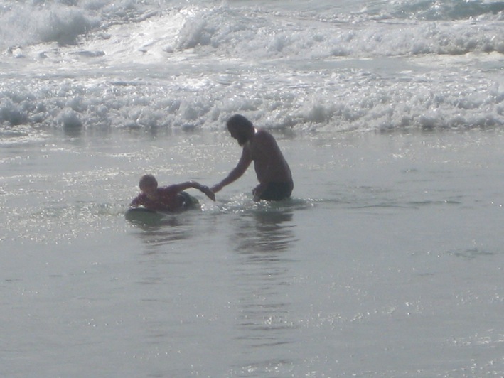 I stepped out of the water and grabbed the camera so, I could capture Hope’s moment of surfing. In watching him help her, I dropped to the ground in tears. I cried harder than I’ve cried in a long time. What a beautiful moment. I will never forget the way I felt right then. I could not even begin to thank God enough or even have the right words to describe the way I felt. How could I ever have even thought I needed to bring someone for protection or think that just because he didn’t “have it all together” that I needed to be careful? And who am I to even judge whether he has it all together or not? I am absolutely not even one bit closer to having it together than anyone else in this world.
