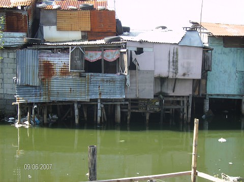 At the time that question was bouncing around in my head Our Philippine contact throws the van in park, looks back at us and says, “You got flashlights right? We gotta cross a bridge – come on, you’ll see.” As we get out we’re surrounded by shanties, little homes and stores made of stick and some metal roofing. The place stinks of a smell I can’t quite place; but, pleasant is NOT a word I’d use to describe it. We gear up and head thru total hopelessness. You can see it on their faces. Hot, sweaty people just sitting outside chillin’, looking at us like we’re from the circus. I’m used to that by now. Not many Americans stroll thru this part of Manila. The men are gathered around, shirtless, usually smoking and talking amongst themselves. We continue the 100 meter walk winding thru this “town” by the Manila Bay, trying to keep from stepping in the deep mud, course you gotta dodge the dog with her eight puppies while trying not to fall thru the holes in the bridge. This whole time we can barely see a thing, except were our next step is supposed to go, and that’s thanks to our tiny head lamps. But those head lamps barely scrap the surface of what’s really out in the darkness or underneath the bridge. The “homes” are packed together so stinkin’ tight. Doors and windows don’t really exist, so you can easily see right inside. At this point, I’m starting to think I’ll be lucky to get a shower at all tonight – funny how I prioritize things. Anyway, we finally get to the school SLASH church where we’re staying. We gather, shoot the breeze for a bit and then have a prayer. As our contact is leaving he says watch for the rats, but he said it with a smile on his face as he held up his hands to demonstrate the size of these lovely creatures. Yeah – he wasn’t kidding! We got rats, mice, roaches, no running water and a six foot by three foot hole in the roof, BUT at least my bed SLASH table is three feet off the ground, so I’m safe from all those critters. PLUS we got a bucket shower and a heck of a lot of ministry opportunities around here. Seeing how there’s 1400 hundred families that live in this camp and only 20 people show up for church each Sunday – I’d say we got lots of folks to be Jesus to. Praise God! He’s teaching me “the secret of living in every situation.”