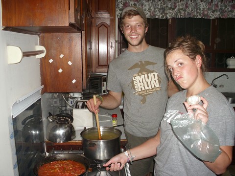 Me and Josue cooking our fisrt family meal! Made sauce from tomatoes, oil and garlic. It was delicious and super fun.