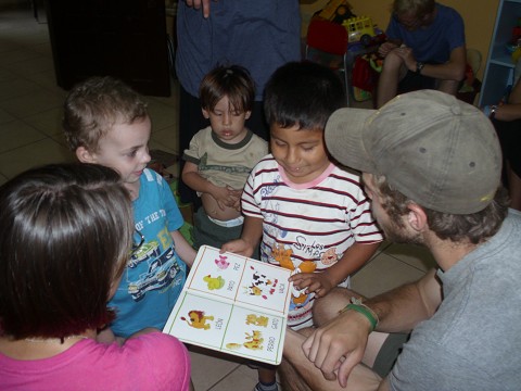 Top Left: Me and baby Carlito at El Jordan. He was the sweetest. Top Right: Molly, Josue, Ben and me cleaning an apartment in El Jordan. Bottom: Josue reading to some very intersted children. The white child is some Canadian missionaries' son.