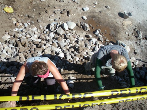 Me and Ben moving a giant pile of rocks, with our feet. I felt like a dog. haha