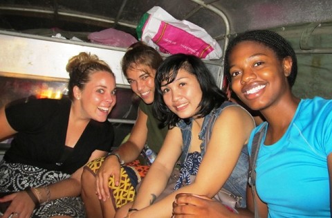 A girl we have been visiting at one of the bars says she is ready to leave the bars now.