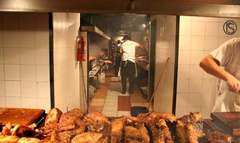 Ok, so it’s just this huge grill in front of you that you bring your plate up to, and the guy loads you up…then there’s two rooms behind this that are filled with grilling meat! Greg you would freakin love this place!!!