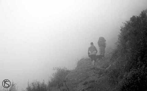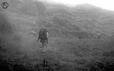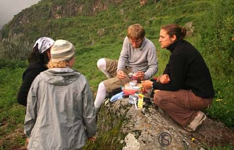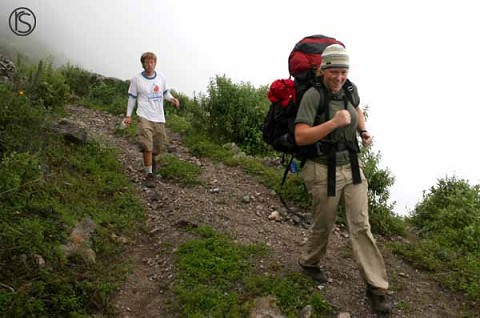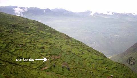 Candice and I think Eric on the way up. We started in a town called Obrajillo at 8,800 ft. Annie had her GPS with her, so she used it to know how high we were. We camped at about 12,000 ft. And in the morning before we headed down, we all went out exploring on our own. And at one point I heard annie say we were at 13,000 ft, and I was probably another 300 ft up at least. PRETTY COOL!