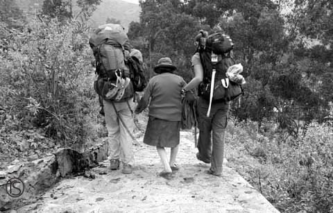 Ginger and Annie helped a little old lady down the stairs near Obrajillo.