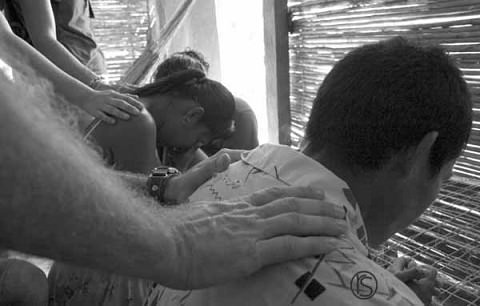 we prayed for this guy because he had just had some stomach surgery of some sort. It was funny/gross, cuz a family member showed us a jar with whatever it was they took out of him, in it. Kinda strange. 🙂