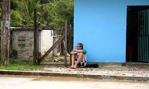 We’ve been staying in a very nice house for the area. Concrete floors, stucco walls, tin roof, electricity, gas stove, running water, refrigerator, toilet (no seat though) shower, big covered porch and 4 huge hammocks. We were blessed to be able to stay here.