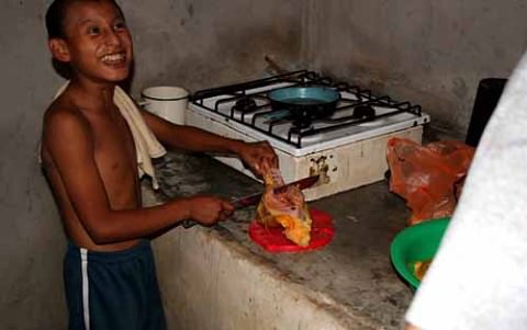 This is Pedro, who I think is Alfredo´s son. He´s helping us cut up this chicken.