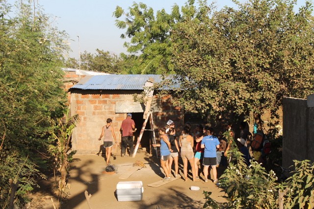 together and acting in skits, installing sinks and mirrors, visiting poor