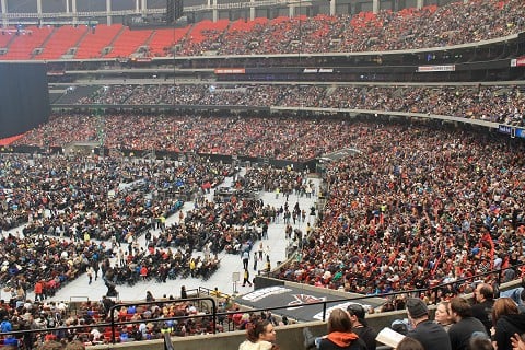 Crowds of people. Oh the lovely feeling of being right in between thousands and thousands of people. Come join the crowds to watch their favorite football team. Some join to drink beer. Some join to worship God. And still some join just because they were invited to come.
