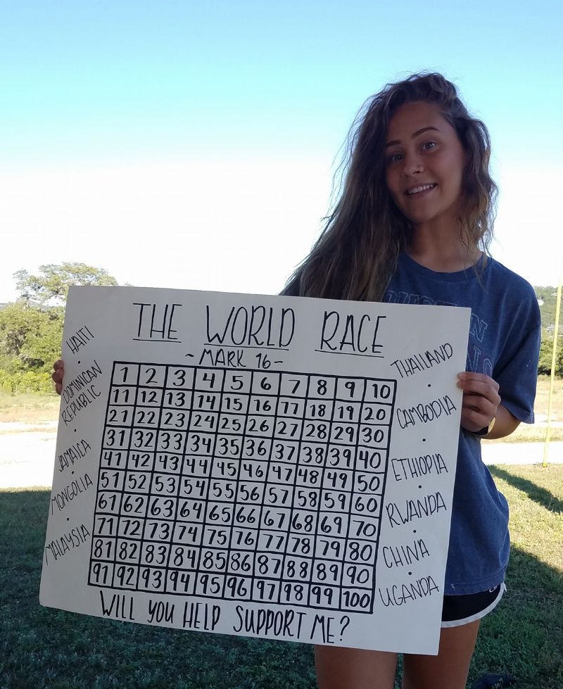 As you can see in my photo attached, there are boxes numbered 1-100, each representing a donation amount or the price you would adopt that box for. IF EVERY BOX GETS ADOPTED by September 23rd, I would have reached my first deadline, and that would be incredible! You can also adopt as many boxes as you would like. To adopt a box, you can simply click on this link -> https://www.adventures.org/give/donate.asp?giveto=worldrace&desc=Sam+Vannoy&appeal_id=VANNOYSAM%C2%A0 <- and once I see the amount donated, I will scribble out that box, (since it’s been adopted).
