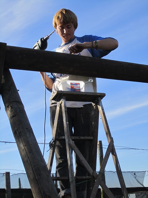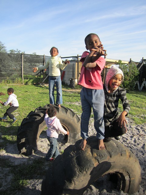 During out last week, we were asked to build a playground outside of the crèche (preschool) building and landscape the area. Our materials to use for the playground? Wooden poles typically used as telephone poles, though the circumference was a bit smaller than normal, and some tractor tires. I may have been slightly skeptical about the outcome of this project.