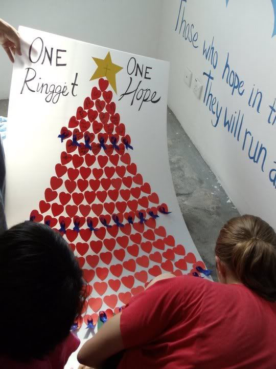 One Ringgit, One Hope – a campaign to raise Malaysian awareness of child abuse. We drew/cut THOUSANDS of hearts & cut/pinned over 1,000 blue ribbons for this project.