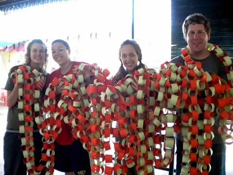 churches Christmas celebration the next day. We sat and made yards and yards of
