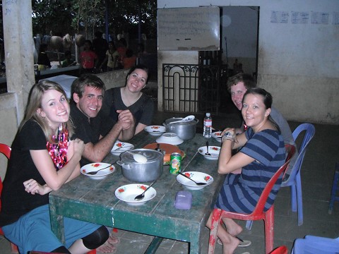 All six of us stayed in a room with just grates for windows and doors. We set up our tents for a bit of privacy and protection from the mosquitoes at night. There was rarely a moment when there was not a Cambodian, young or old, staring in the windows at us. I mean we were quite a sight with our tents, music, and pale green and orange Christmas decorations.