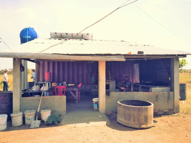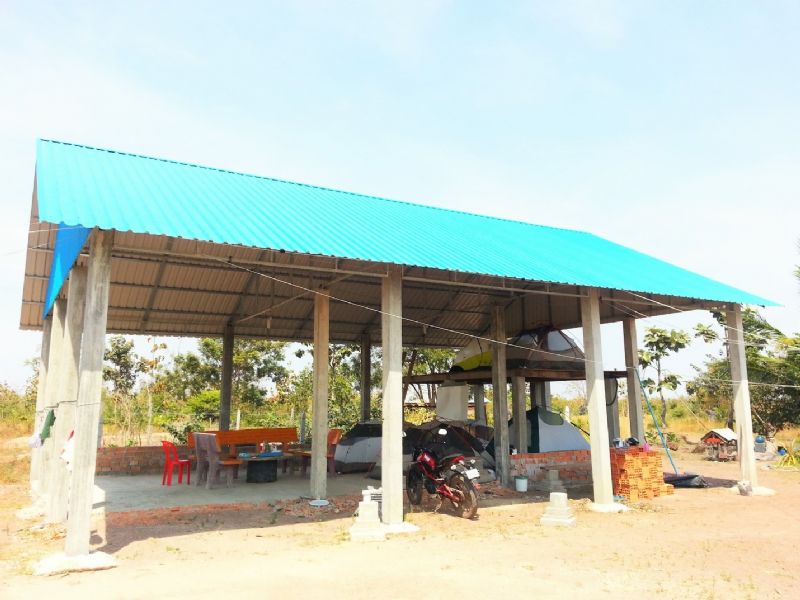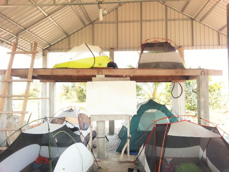 [Home] Normally in the summer, Teen Missions International holds a boot camp for local Khmer (Cambodian) teens on the ranch property and uses their large, open-air shelter as their worship and meeting space. But during this “winter” month, there is no one else on the property and so this shelter serves as our primary living area. We sleep in tents every night and have our meetings and team times by the bench area. The Cambodian sun can get pretty toasty in the afternoons so we’re very thankful to have this shaded space for our things!