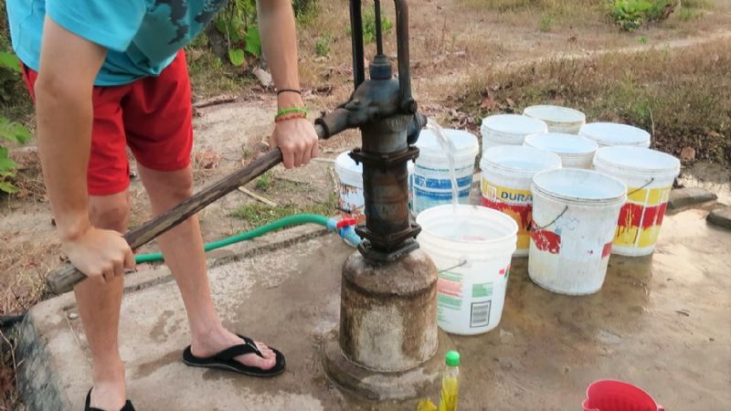 [Water] And then there is the well. Everyday we have to pump and fill at least 10 buckets of water for our showers, toilets and drinking water — even more when we have to do our laundry or water the garden. We try to pump during the early morning and late afternoon times when the temperature is cooler to make it easier for us. And it doesn’t help that the well is a good 80 yards or so from our camp site…but at least we get a great workout by carrying them back and forth everyday!