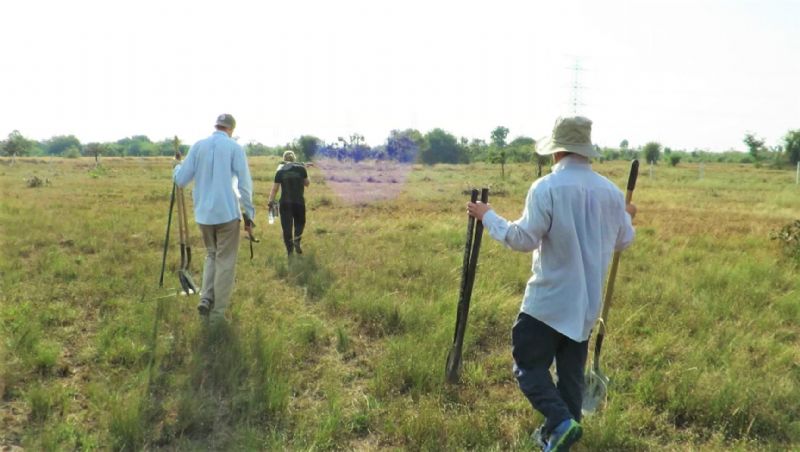 [Barbed Wire Fencing] The biggest work project that our team has had to do is to install/repair the barbed wire fencing around the property. Over time, many of the existing posts had fallen down due to soil erosion or cows running over them. This required that we replace the broken posts by digging new holes in the ground (at least 15 inches deep), placing new cement posts (weighing roughly 70 pounds each) into the holes and then installing/repairing the barbed wires on each post. It may not sound like much…until you realize that the property is about 150 acres in size! We’ve been working on this project for over two weeks now and we’re still not done (but we’re close)!