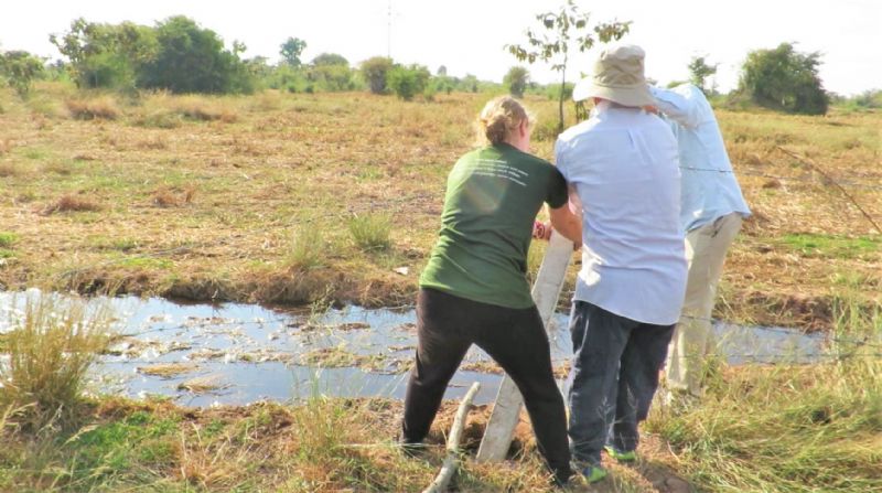 [Team Clean Sweep] So why the need for so much barbed wire fencing? Because of the herds of cattle that come by the property everyday to feed and ruin the rice fields in the process. But even as we are trying our best to put up the barbed wires as fast as possible, a few cows would still get on the property every once in awhile. So that’s when Team Clean Sweep goes into action and literally chases the cows away. And yes, I have on the same clothes in these work pictures because this is my official Cambodian work uniform that I wear everyday…and it’s the best $7 I ever spent!