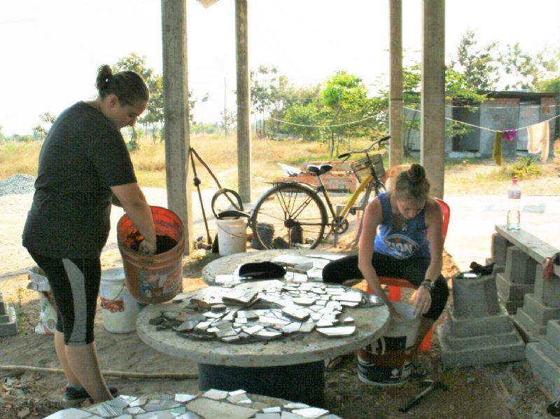 [Tiling] There are also many other side projects that we have going on throughout the property each day, one of which is tiling. Our team would tile some of the tabletops and also the stovetops in the kitchen. Teen Missions International is planning to build another complex on the property soon and is hoping to make this property their main base for Cambodia. So while our work this month may not be glamorous or exciting, we know that what we are doing now will help Teen Missions International and their missionaries in the (hopefully near) future!