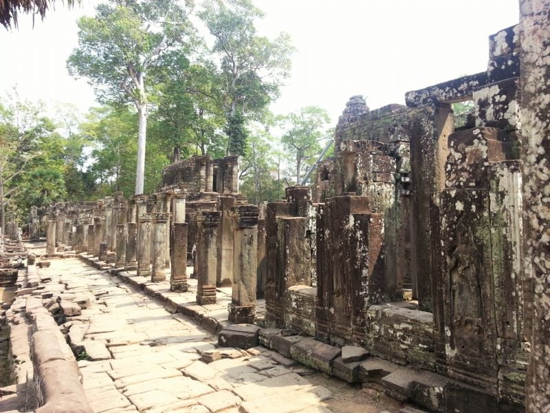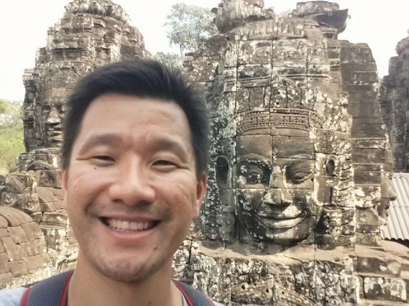 [Bayon Temple] So Angkor Wat is actually a complex of many temples and is the largest religious site in the world. It’s so big that we had to hire tuk tuk’s for the entire day to drive us from one temple to another. One of our stops was at Bayon Temple, which is known for its many stone carvings — both of the columns of bas-reliefs (carvings depicting historical events and everyday life) and the many smiling stone faces carved onto the towers. Perfect spot for a selfie!