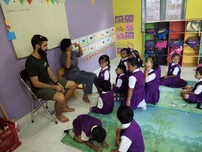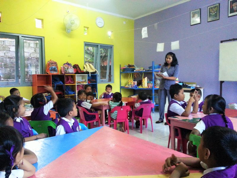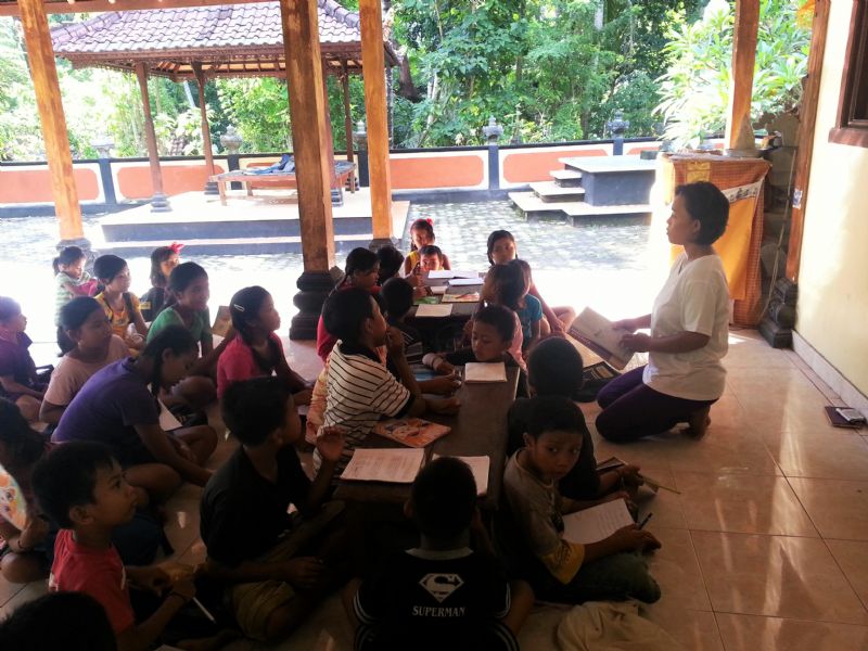 [Kindergarten School] One of KCMA’s main ministries is teaching kindergarten at a Christian school in Amlapura. They teach two different classes (for ages 4 and 5) in the mornings everyday (except Sundays) and are free to the students. This is significant because in Indonesia, primary education starts and is free beginning at age 6, which is equivalent to first grade. So it is very rare to find a school that offers free education to kindergarteners in Indonesia. But KCMA highly values the importance of education for kids, especially those from impoverished areas, and uses teaching as a powerful ministry tool to enter into these communities. While most of their students come from Hindu backgrounds, the teachers incorporate Christian elements such as prayer and praise into their classes. In fact, our team was able to teach and lead a praise song for them during our visit!