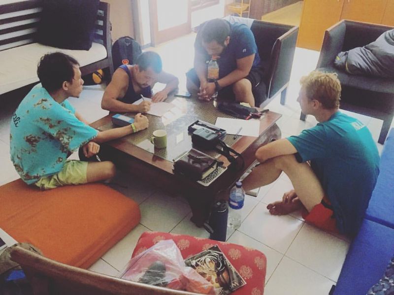 [Team Wild + Mentor] Our first surprise actually started back in Vietnam at debrief when we found out that our mentor would be staying to join us for a week in Indonesia! He had mentioned to us guys at the very beginning at Training Camp in January that most squads have a month of men’s ministry, or “Manistry”, and that even though there are only 4 of us, he was fighting to give us the same opportunity. So to discover that we indeed were having our Manistry month and that he’d be joining us for a portion of it was an absolute treat. We were able to learn from his experience on the Race and live life together that first week. We had team morning workouts on the beach, connected with local believers and were treated to dinner at an all-you-can-eat Brazilian steakhouse on his final night. What else would you expect from a men’s ministry!