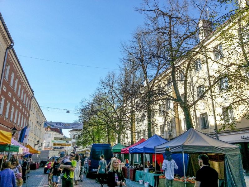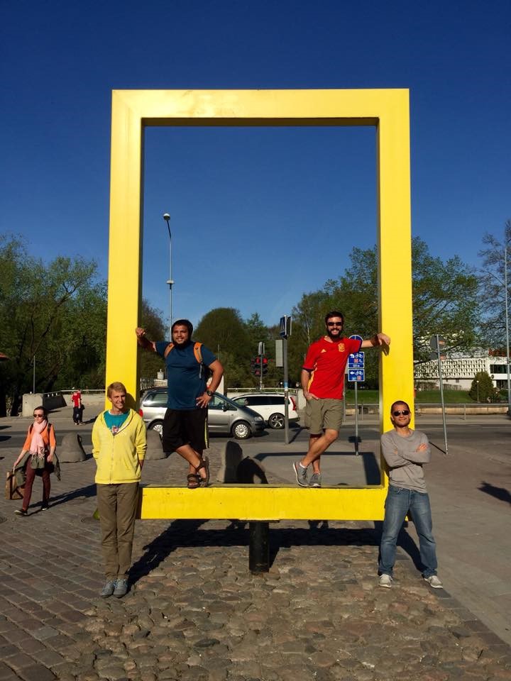 [Old Town Square] From the centre, we made our way to the old town area of Tartu and to the main square in particular. We first walked thru an outdoor market where the pedestrian street was lined with many different kinds of foods and souvenir vendors. The street then opened to the impressive town square, which was bustling with more vendors and people enjoying themselves in the outdoor restaurants. And at one end of the square is the pink town hall building and at the other is the main river that runs thru the city. The old town square truly is a scenic photo spot, hence the big yellow National Geographic frame — but unfortunately for us, the sun wasn’t cooperating that day so we had to take our photo in the opposite direction!