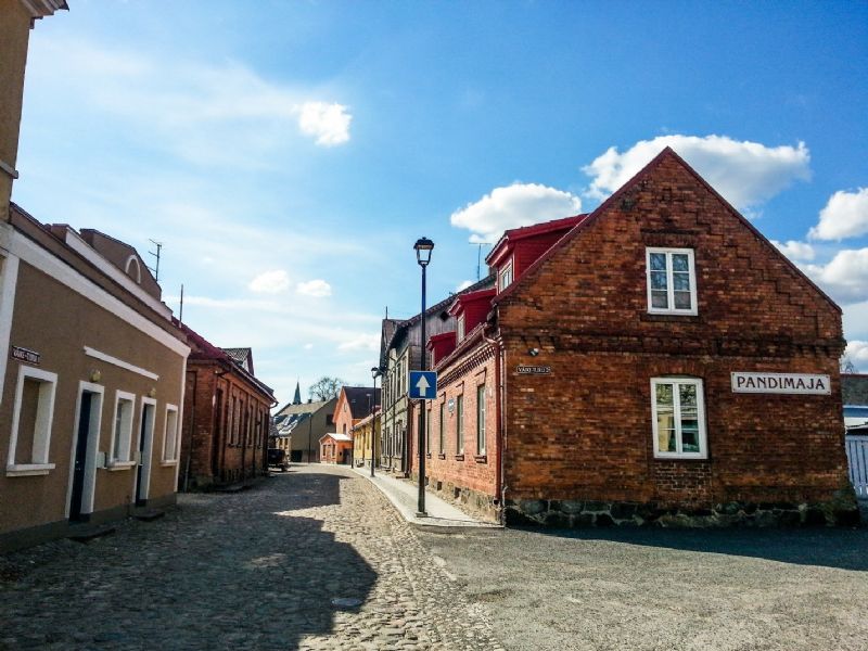 [The Town] The ruins then led us directly into the town and center of Viljandi, where we came across some beautiful buildings and architecture. The town very much has a European village feel to it, with its range of colors and architectural styles and cobblestone roads. And the center itself has a few interesting things to see as well, such as the town museum and watch tower. Also, the residential houses are very cool to look at, especially those built on the sloping hills that face out towards the lake (more on that next). Being in Viljandi made it very apparent that our team was now in Europe — and I loved my time living there!