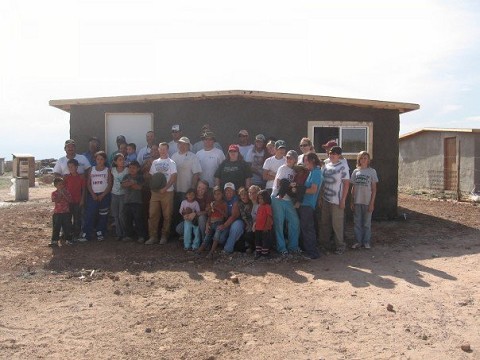 (Our team with the family and their newly built home)