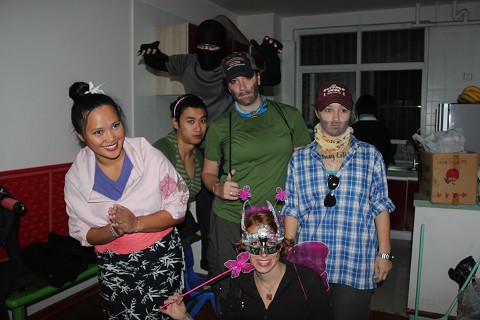After a busy week of work, our teams needed a break (and a dance party, obviously). Due to our busy schedules we didn’t get to celebrate Halloween on the 31st…but who says you can’t have a Halloween party on November 3rd? We dressed up, ate dinner at our favorite restaurant in the market, and sang and danced the night away at video karaoke. (Yes, Jessica and I are dressed up as men. Matt and Dusty, to be specific. We got the most stares I think.)