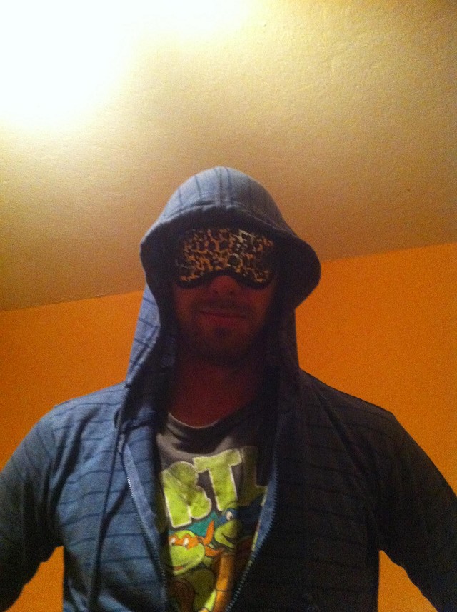 to Micah and Carter’s room and Micah stayed in my room.  He even rocked my leopard print eye mask to