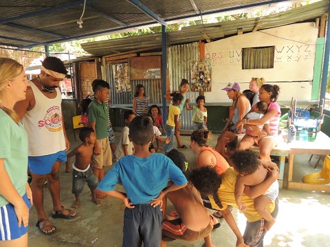 While playing “Pato, Pato, Ganzo (Duck, Duck, Goose),” the oldest boy in the group (probably 11 or 12 years old), had his baby brother in his lap. When the girl tapped him and yelled “ganzo,” he carefully got up with the child, and slowly jogged around the circle. Clearly, he didn’t catch the girl. And as the next round began, he carried the baby around and helped the little guy tap each person’s head while he said “pato, pato, pato…” It was a very different image of what I would typically see in America….watching a boy be so careful and responsible with an infant during a game when most boys his age would typically be more concerned with winning. Yet to him, winning didn’t matter. He just wanted to have fun and wanted his baby brother to be a part of it.