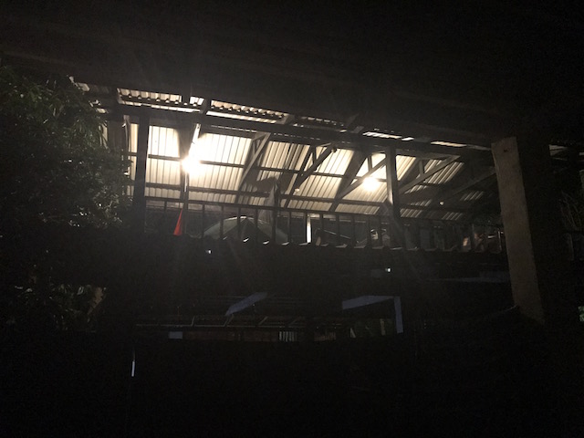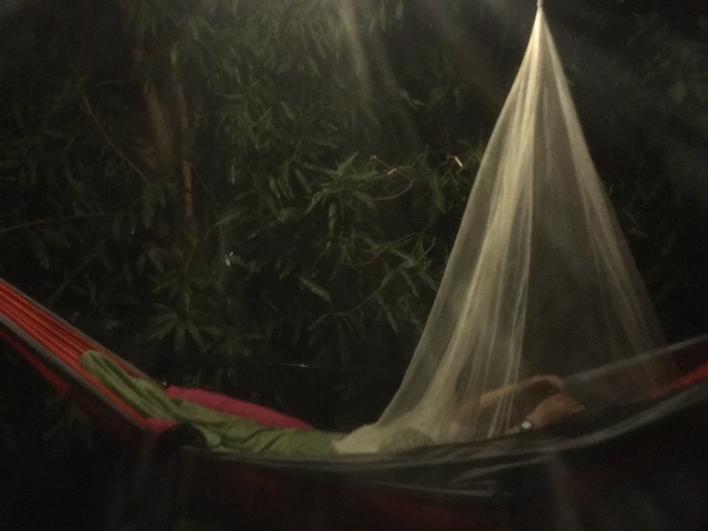 After the staining was completed on the upper deck area we quickly moved upstairs to outdoor arrangements. The space is full of tents and hammocks and has been significantly cooler than the room we were sleeping in. It is also louder–roosters crow ALL through the night, I’m thankful for earplugs.