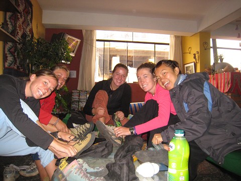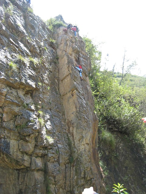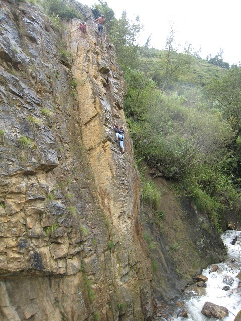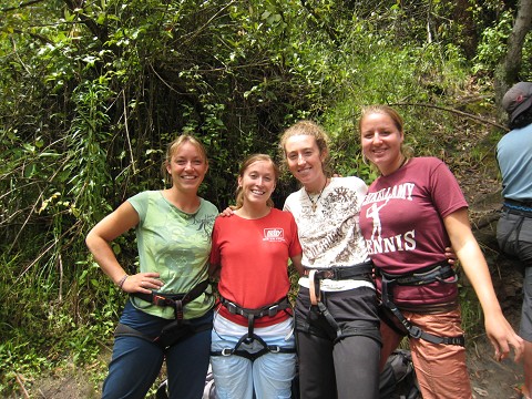 On Monday the Zeo girls, (Me, Leah, Amy, Lynette, and Alissa) spent a day in Monterrey, Peru rock climbing! It was a great day, full of many challenges, and new and interesting ways to climb. There was even one point when our guides anchored to a rock with the rope! I was a little confused, when I saw that they had webbing but chose not to use it. But when I asked them they seemed to think that it was completely fine with just the rope, and that we would be ok. Naturally, as the most expirienced, I was volunteered as the guinnea pig to repel down to the river first, and after seeing that I survived, the others were willing to go for it. We all survived, and had a great time bonding as a team. Here are a few pictures…