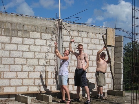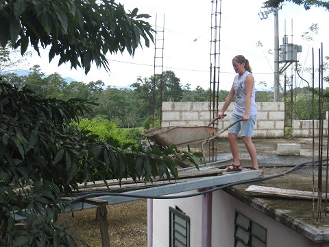 Next, I worked with Jake and James on carrying cinder blocks across a very sketchy homemade bridge to the roof where they were stacked to make a wall that was being constructed.