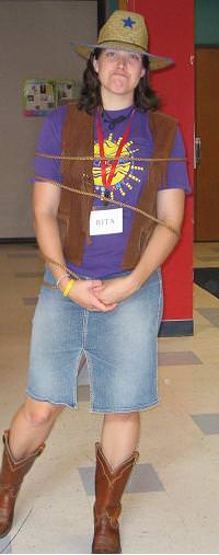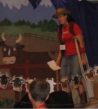 I volunteered to coordinate snack. As is pretty typical in ministry, this volunteer post increased as we go closer to the week. I was assigned the role of Rita the Cowgirl. The part was written for a boy (Rowdy) but as we did not have an eligible cowboy on hand, the role became female and also became mine. I was sceptical because Rita is basically a huge ditz. I take issue with playing a stupid girl, just not the kind of role model I want to be. However, I really couldn’t turn down the opportunity to wear my cowboy boots and worship with kids all week, so Rita I became.