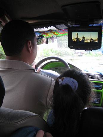Take your Daughter to Work Day- the daughter of our cab driver crusing around with him watching videos on a Saturday