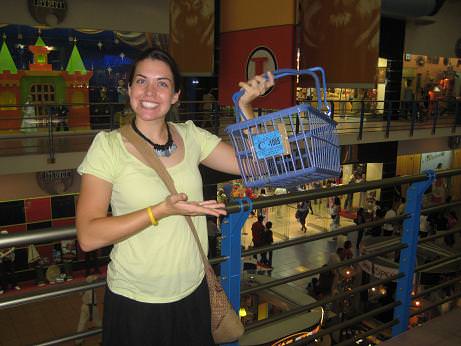 First, we found a spot where we could leave our bags while we finished our shopping. Then, came the surprise… instead of a ticket…. or a tag… we recieved a numbered shopping basket to reclaim our packages when we returned.