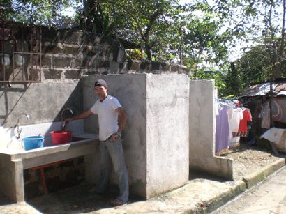 A third of every family’s income is spent on obtaining clean drinking water. Best case scenario they have a water tank and a truck comes by to fill it up. The Children’s home used to get their water from a well. When they were connected to the Manila water line they suddenly found themselves with a commodity to share. The solution was quite innovative and really blows me away. Sinks and showers were installed just outside the walls of the property on the street. Water from the well was redirected to supply these fixtures. Now we see people filling up pots and buckets at the sinks every day and it isn’t rare to see someone emerging with wet hair from one of the showers.