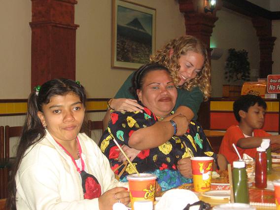 Kari and Gloria hugging over our lunch outting to a local chicken restaurant