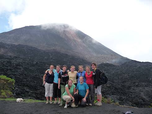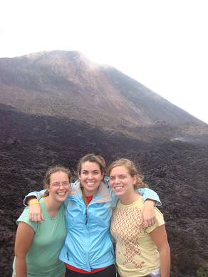 Jackie, Sarah and Lindsey in front of the Volcano… and the whole group of World Race hikers.