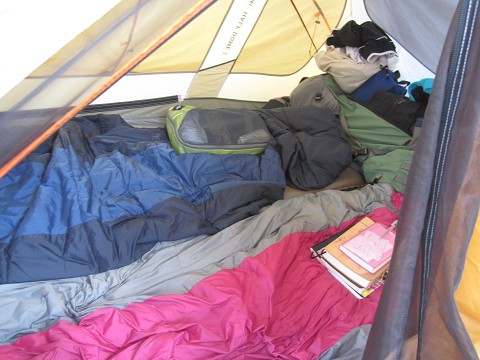 -sleeping in a tent on a beach