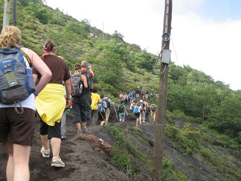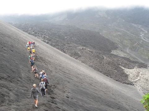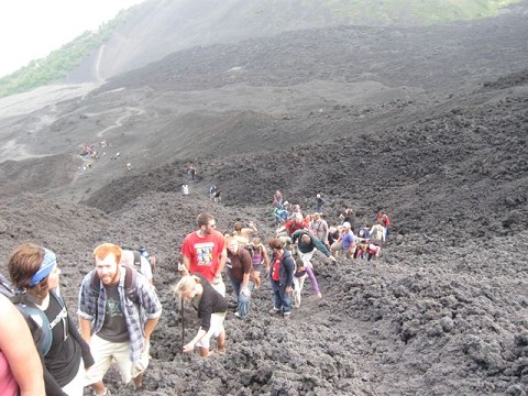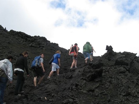 On Sunday, 77 of us, from both squads, loaded into a bus and a couple of vans at 6am to conquer an active volcano. After an hour of hiking or riding horses, we arrived at the start of the volcanic dirt, which we were then asked to run down in order to start up what turned out to be a questionable trail. Billions of volcanic rocks of all sizes dared us to continue, as every other step created a tiny avalanche behind us. Eventually, we arrived on freshly hardened rock with molten lava flowing nearby and crevices of ash and heat radiating around us. Pulling out marshmallows and cheese sandwiches, we roasted and grilled our treats in the pockets of smoldering rock.