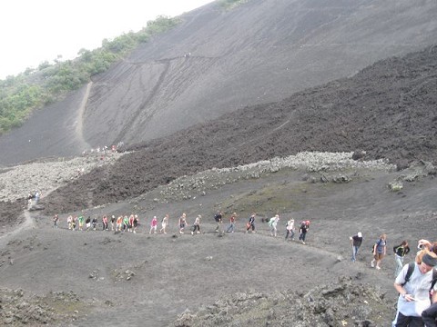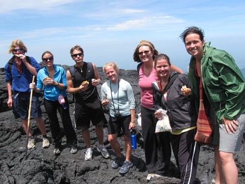 On Sunday, 77 of us, from both squads, loaded into a bus and a couple of vans at 6am to conquer an active volcano. After an hour of hiking or riding horses, we arrived at the start of the volcanic dirt, which we were then asked to run down in order to start up what turned out to be a questionable trail. Billions of volcanic rocks of all sizes dared us to continue, as every other step created a tiny avalanche behind us. Eventually, we arrived on freshly hardened rock with molten lava flowing nearby and crevices of ash and heat radiating around us. Pulling out marshmallows and cheese sandwiches, we roasted and grilled our treats in the pockets of smoldering rock.